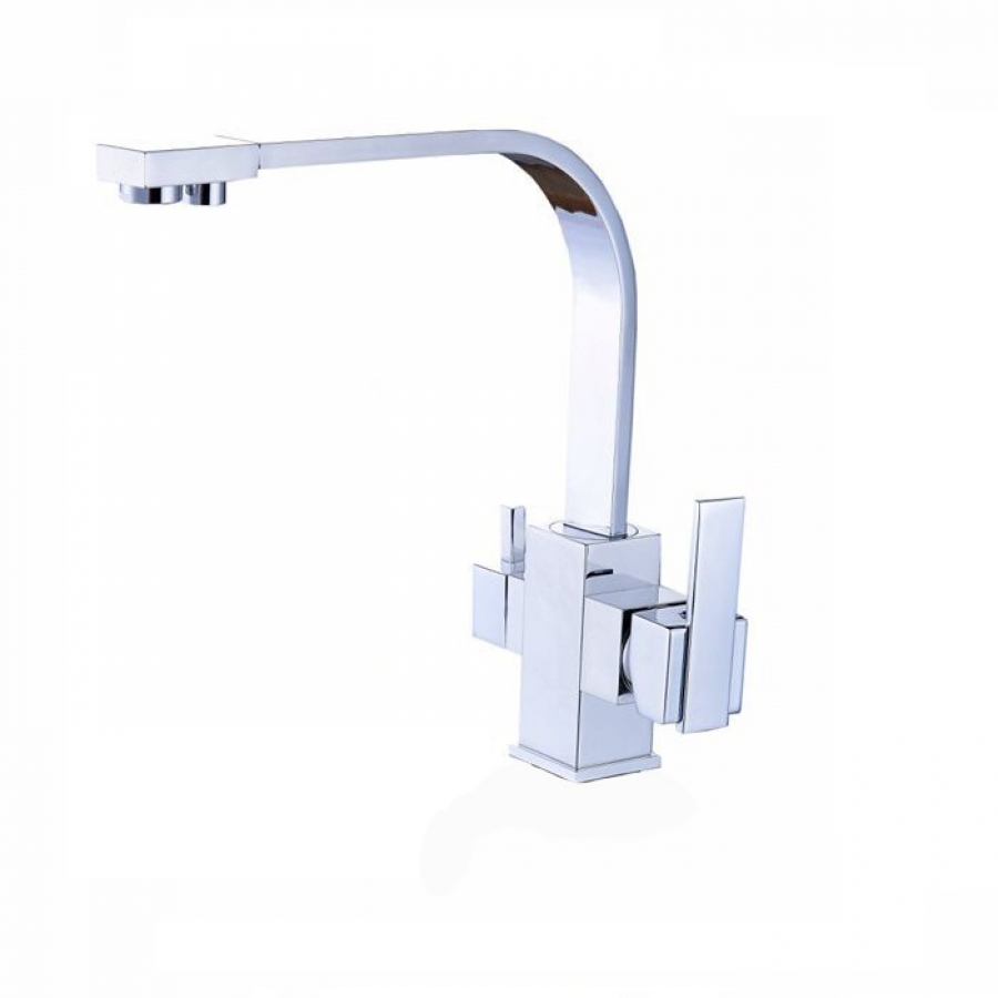 Baterie cu 3 cai pentru montare pe chiuveta de bucatarie, pentru furnizare apa rece, apa calda precum si apa purificata/filtrata de la un filtru apa tip EXCITO sau de la un sistem de osmoza inversa, montat la chiuveta de bucatarie. Tija bateriei poate fi rotita 360 grade.